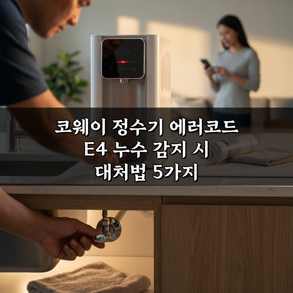 코웨이 정수기 E4 에러코드 누수 감지, 당황하셨나요? 즉시 따라 할 수 있는 5가지 대처법으로 누수를 멈추고 안전하게 해결하여 추가 피해를 막으세요!