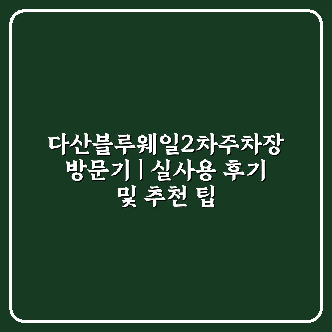 다산블루웨일2차주차장 방문기 | 실사용 후기 및 추천 팁